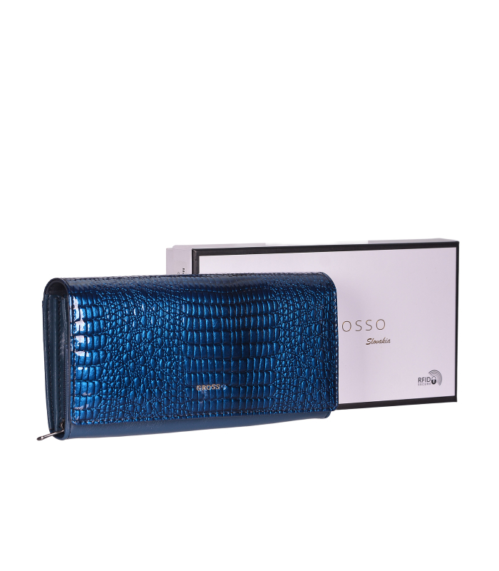 Dámská kožená peněženka v dárkové krabičce. Je vybavena systémem RFID SECURE – moderní technologií, která zabraňuje skenování platebních karet a krádeži finančních prostředků. Tato peněženka je tímto způsobem chráněna po celé ploše.