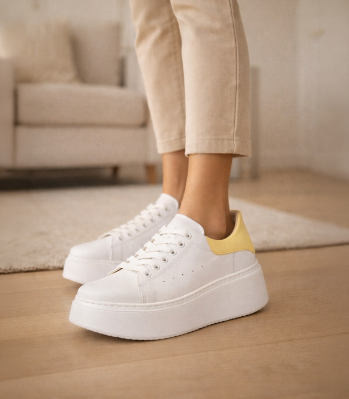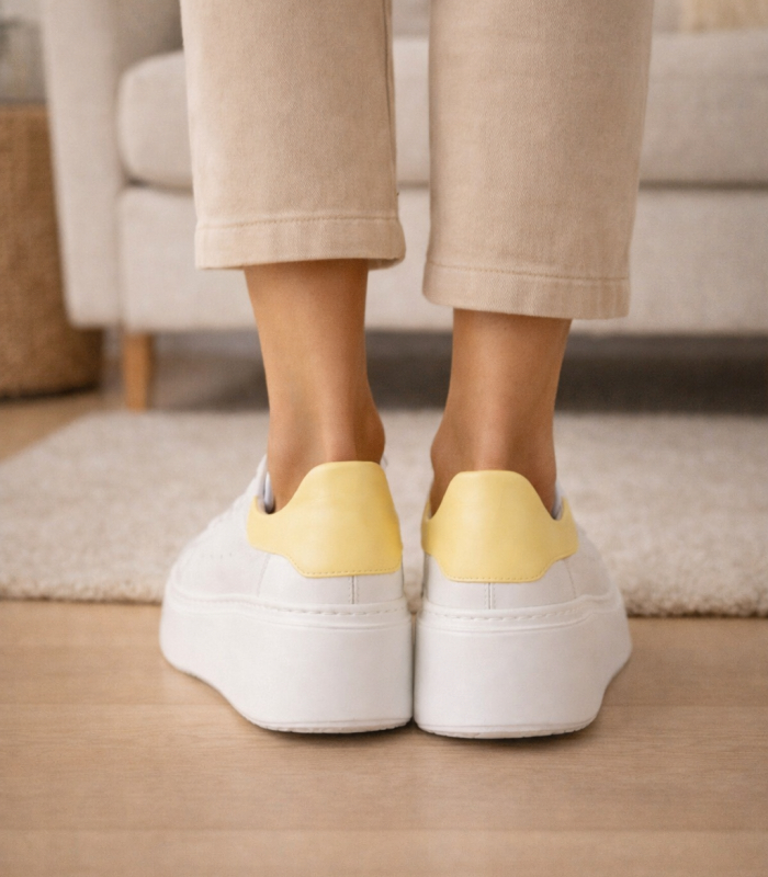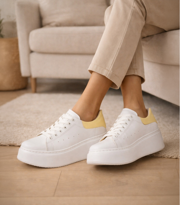Bílé tenisky se žlutou patou n408s2
