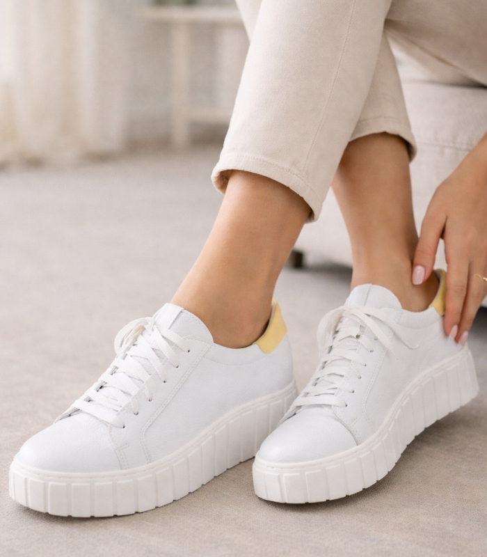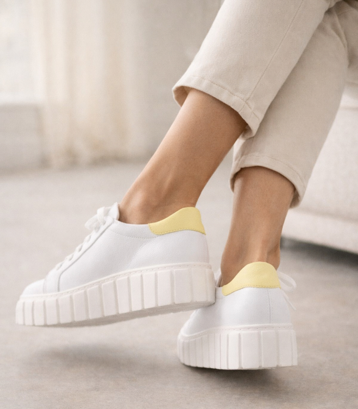Bílo tenisky se žlutou patou s nařasením na jazyku 8000